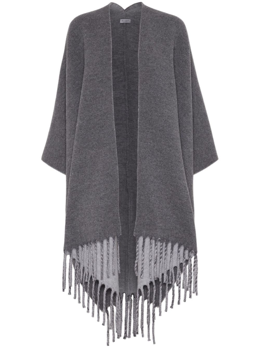 fringed-edge wool-cashmere cape Highlights - Grey - Wool-cashmere blend - Draped design - Fringed edge - Pull-on style Made in Italy Composition Wool 60%, Cashmere 40%