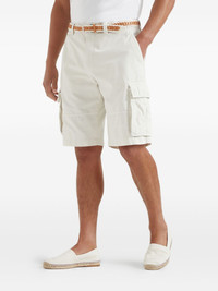 gabardine bermuda shorts Highlights - White - Concealed fly and button fastening - Two side slash pockets - Two side cargo pockets - Two rear flap pockets Made in Italy Composition Cotton 100%, Metal 100%