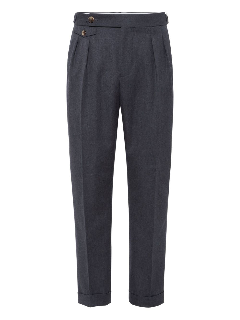 Gabardine tailored trousers Highlights - Midnight blue - Front button and zip fastening - Adjustable side straps - Two side inset pockets - Two rear button-fastening jetted pockets Made in Italy Composition Cotton 63%, Virgin Wool 37% Washing instructions Read Manufacturer Guidelines