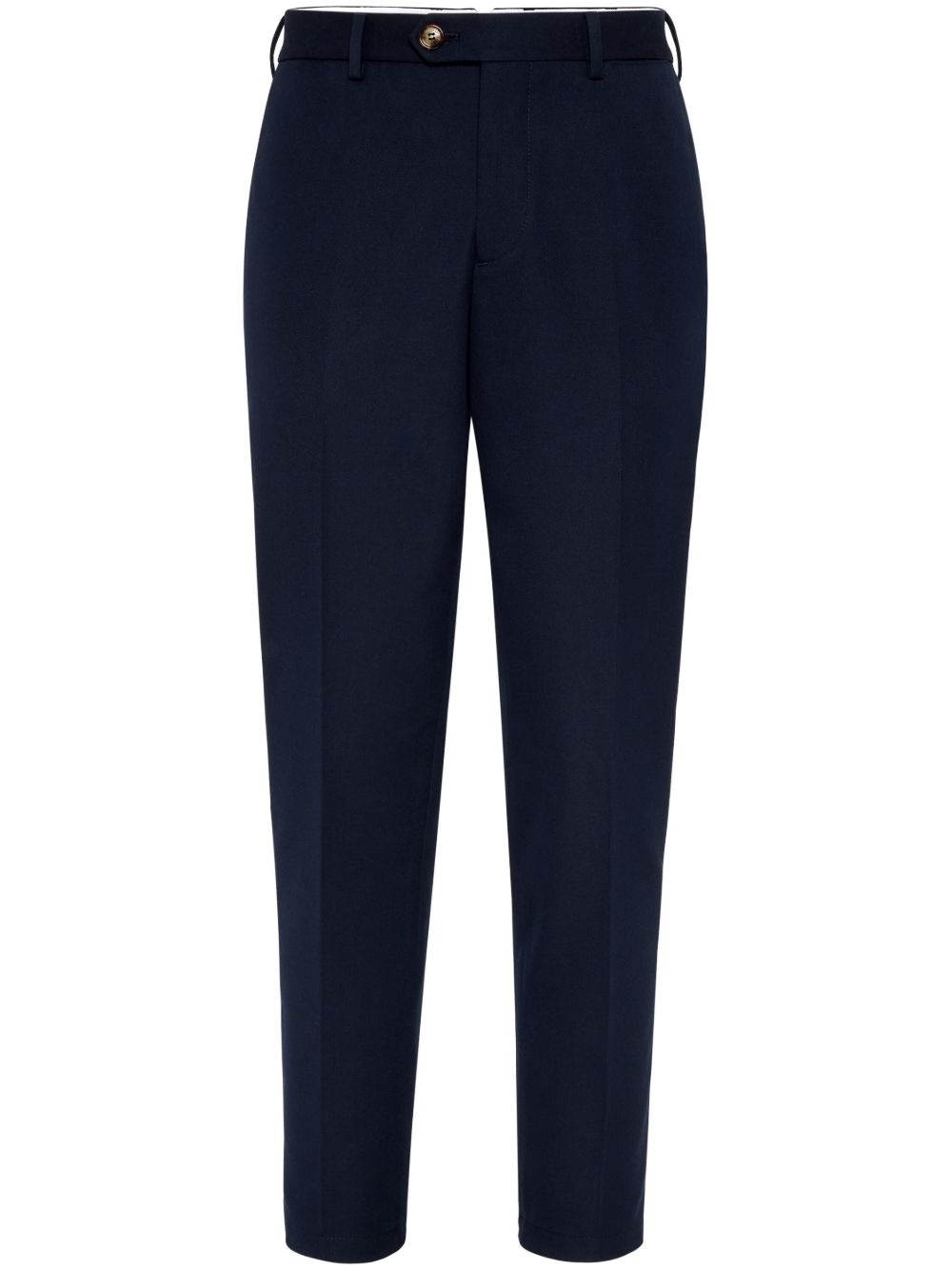 gabardine-weave trousers Highlights - Midnight blue - Concealed front fastening - Belt loops - Two side slit pockets - Two rear button-fastening jetted pockets Made in Italy Composition Cotton 63%, Virgin Wool 37%
