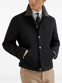 garment-dyed cotton jacket Highlights - Black - Leather collar - Button fastening - Lightweight denim - Front pockets Made in Italy Composition Calf Leather 100%, Cotton 99%, Elastane 1% Washing instructions Read Manufacturer Guidelines