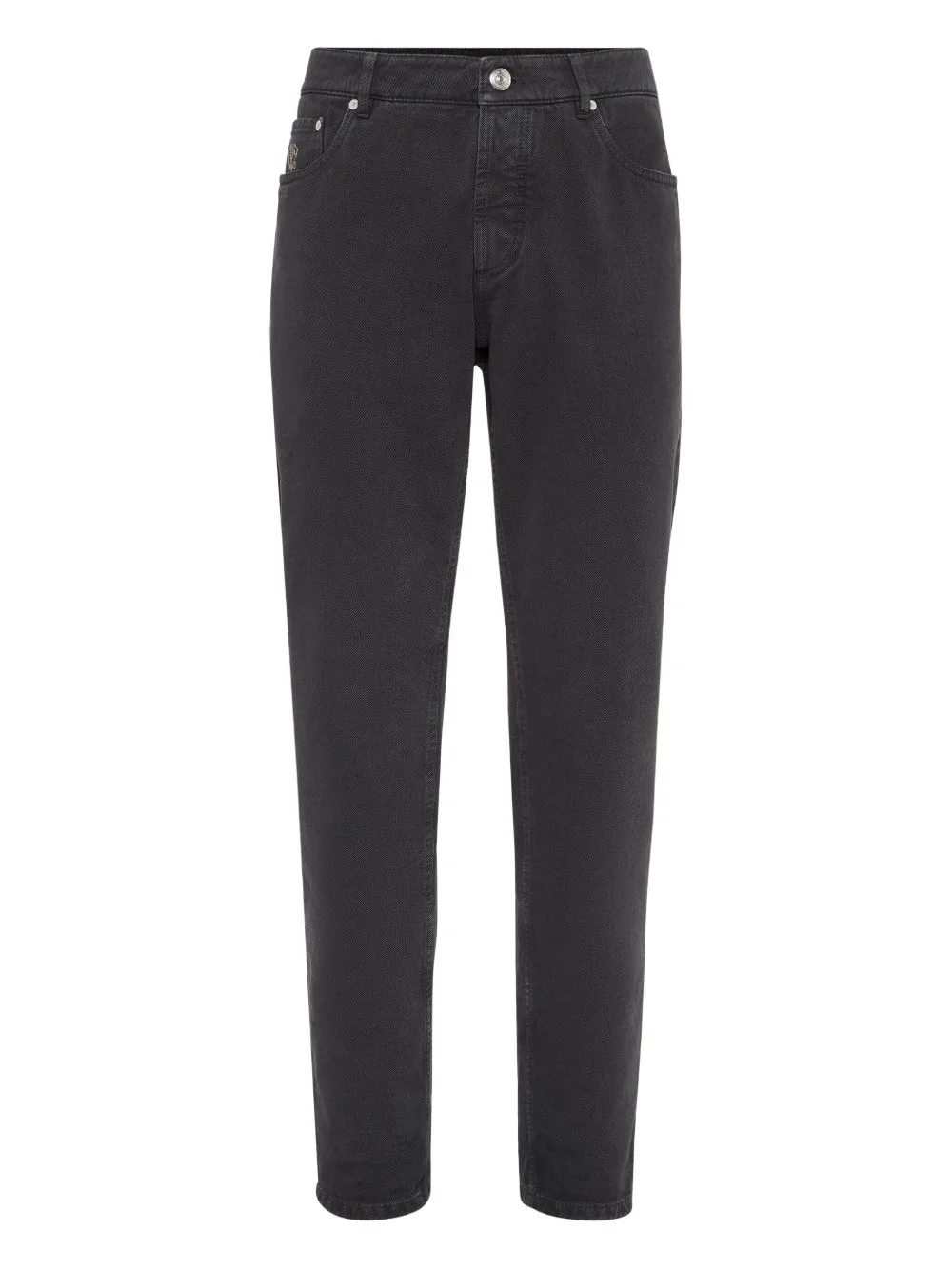 garment-dyed jeans Highlights - Dark grey - Pure cotton - Front button and zip fastening - Five pockets - Belt loops - Garment-dyed Made in Italy Composition Cotton 100% Washing instructions Read Manufacturer Guidelines