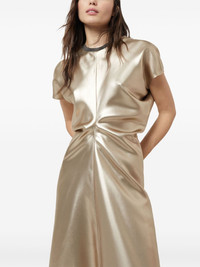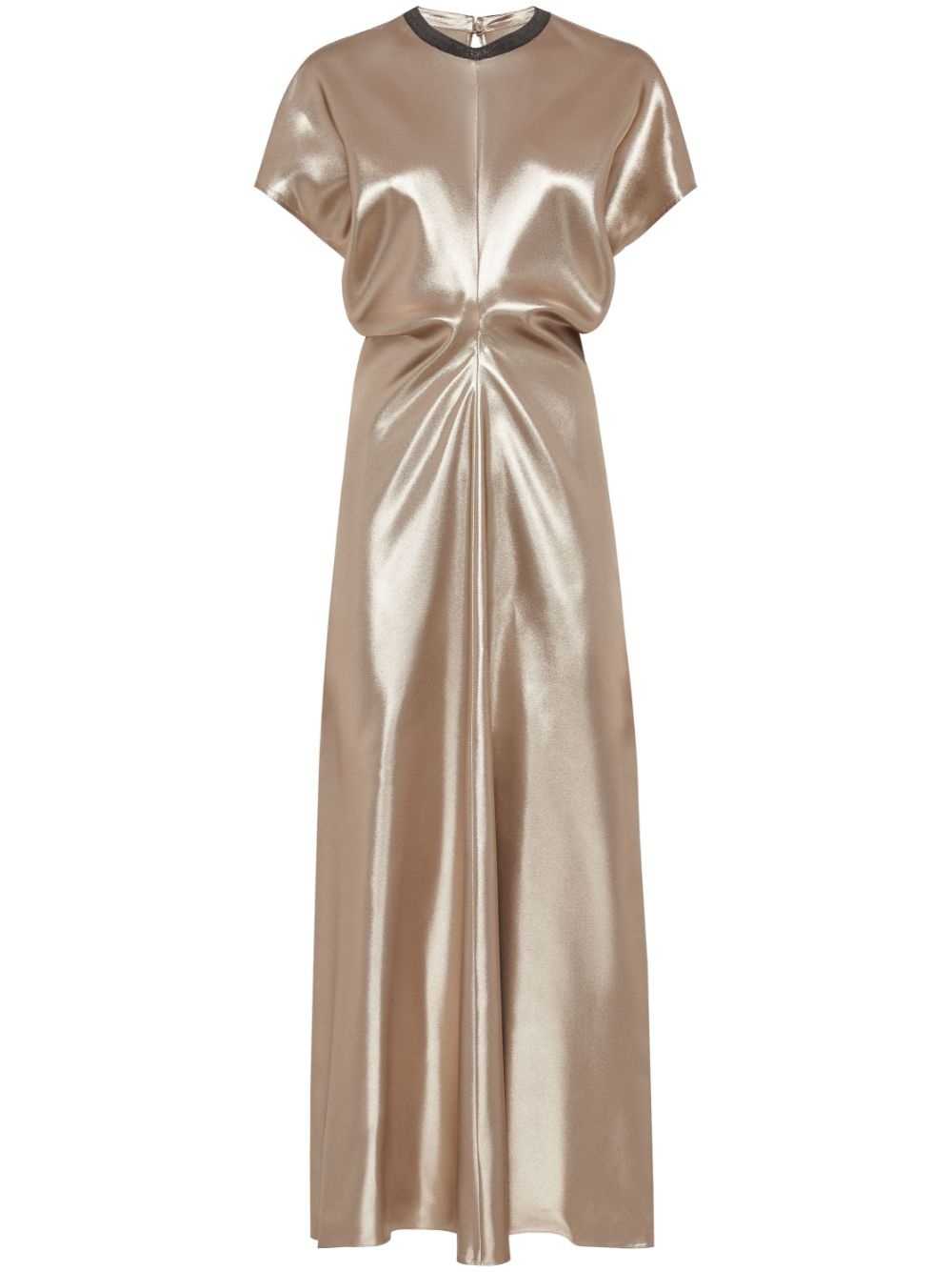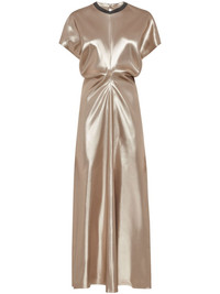 gathered-detail dress Highlights - Beige - Satin weave - Gathered detailing - Chain-link detailing - Round neck - Concealed rear zip fastening - Cap sleeves - Straight hem - Ankle-length Made in Italy Composition Eco Brass 100%, Fabric 100%