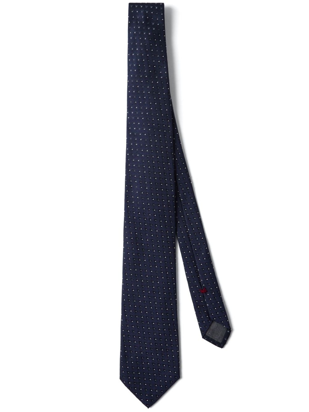 geometric-jacquard silk tie Highlights - Navy blue(white - Silk - Geometric-pattern jacquard - Pointed tip - Self-tie fastening Made in Italy Composition Silk 100% Washing instructions Read Manufacturer Guidelines