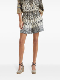 geometric-pattern silk shorts Highlights - Brown/multicolour - Silk - Geometric-pattern print - Elasticated waistband - Two side inset pockets - Two rear welt pockets - Thigh-length Made in Italy Composition Silk 100%
