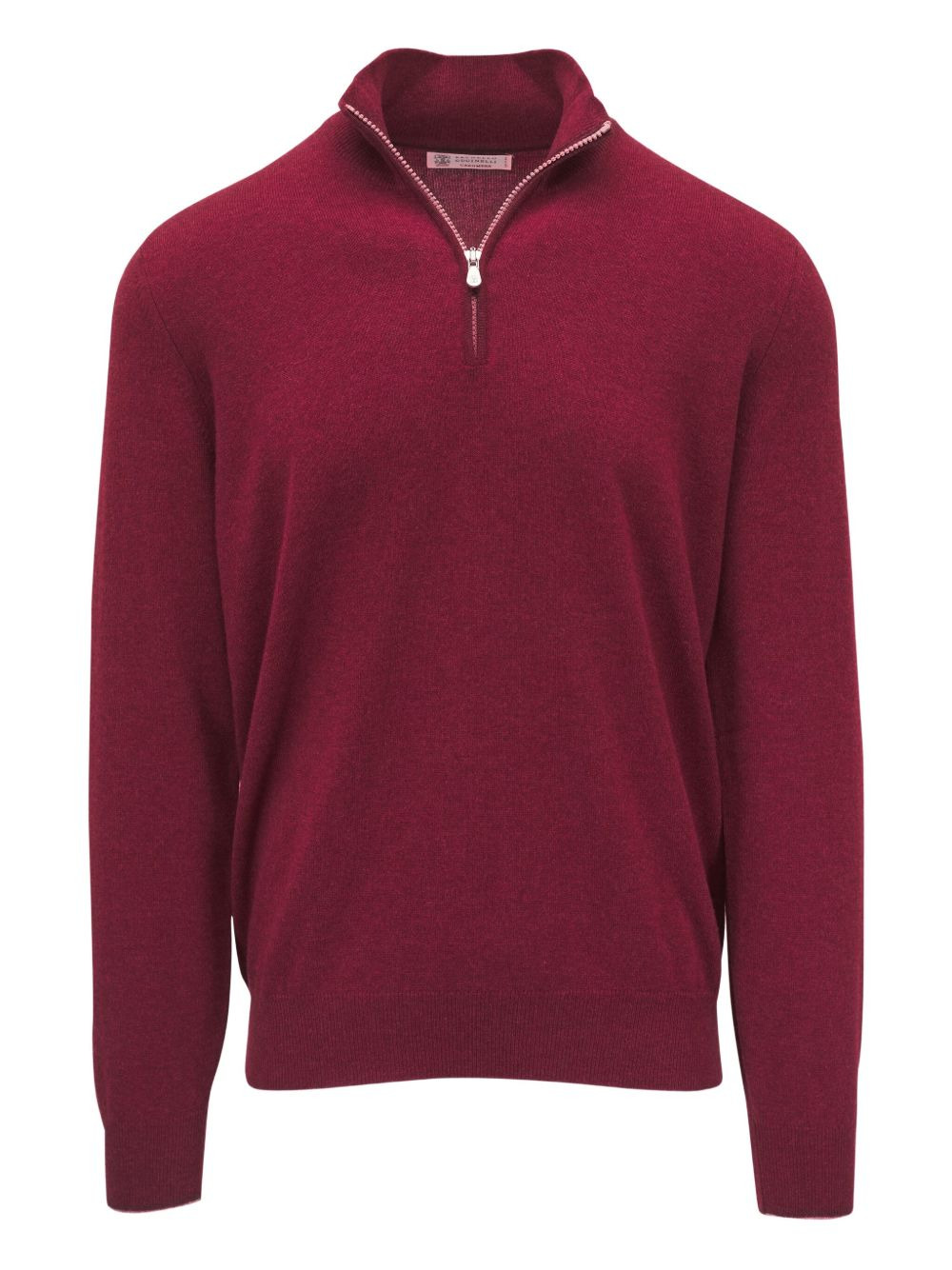 half-zip cashmere sweater Highlights - Blood red - Half zip fastening - Long sleeves - Ribbed cuffs - Ribbed hem Made in Italy Composition Cashmere 100% Washing instructions Read Manufacturer Guidelines
