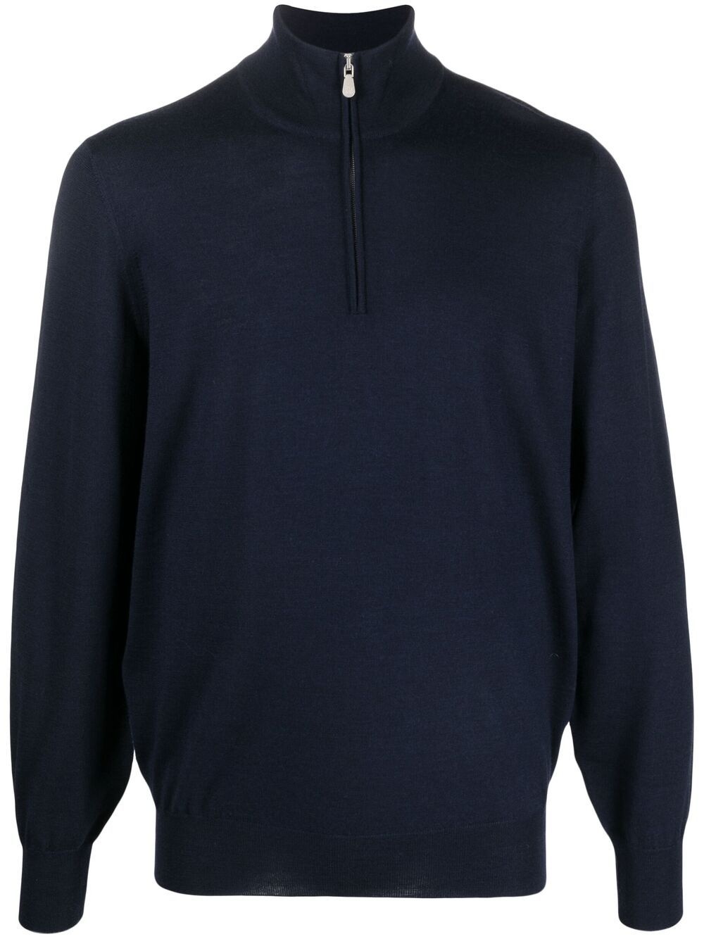 half-zip neck jumper navy virgin wool-cashmere blend knitted construction half front zip fastening long sleeves ribbed hem ribbed cuffs Made in Italy Composition Virgin Wool 90%, Cashmere 10% SIZE & FIT Model measurements Height 6 ft 1 in(1.85 m) Bust/Chest 37.79 in(96 cm) Hips 37.4 in(95 cm) Waist 30.7 in(78 cm) FittingInformation This piece fits true to size. We recommend you get your regular size Cut for a relaxed fit Made with a mid-weight fabric