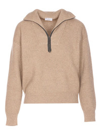 half-zip sweater Highlights - Beige - Ribbed knit - Half-zip fastening - V-neck - Long sleeves Made in Italy Composition Cashmere 100% Washing instructions Read Manufacturer Guidelines