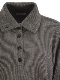 high-collar sweater Highlights - Anthracite grey - Ribbed knit - High collar - Button closure Made in Italy Composition Cotton 72%, Viscose 22%, Metallized Polyester 6% Washing instructions Read Manufacturer Guidelines