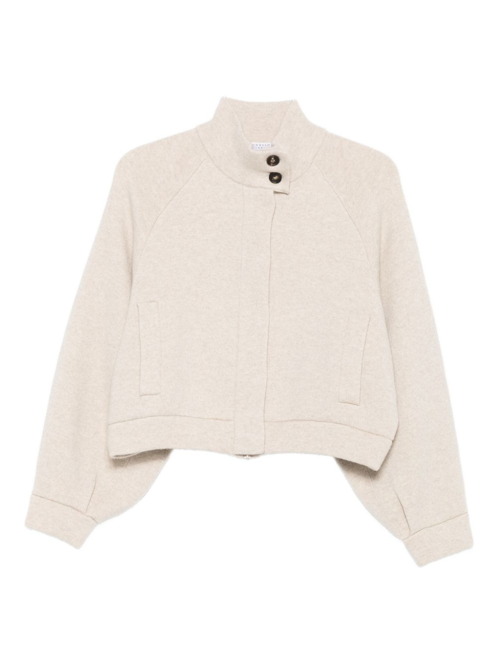 high-neck jacket Highlights - Oat beige - High neck - Zip fastening - Button detail - Raglan sleeves - Side pockets Made in Italy Composition Cashmere 96%, Polyamide 3%, Elastane 1% SIZE & FIT Model measurements Height 5 ft 10 in(1.77 m) Bust/Chest 33.07 in(84 cm) Hips 37 in(94 cm) Waist 24.8 in(63 cm) Washing instructions Hand Wash