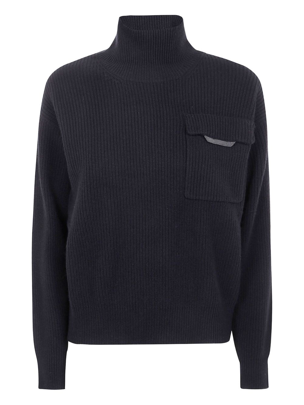 high-neck pocket sweater Highlights - Black - Ribbed knit - High neck - Patch pocket - Pocket trim - Long sleeves Made in Italy Composition Cashmere 100% Washing instructions Read Manufacturer Guidelines