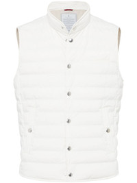 high-neck quilted gilet Highlights - White - Quilted - High neck - Front press-stud fastening - Sleeveless - Two press-stud fastening side pockets - Straight hem Made in Italy Composition Polyamide 87%, Spandex/Elastane 13% SIZE & FIT Measurement CHEST 45.66 in(116 cm) LENGTH 26.37 in(67 cm) WAIST 44.09 in(112 cm) Shoulder Width 17.71 in(45 cm) Washing instructions Read Manufacturer Guidelines