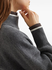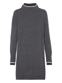 high-neck ribbed-knit mini dress Highlights - Grey - Ribbed knit - High neck - Long sleeves - Contrasting trim - Side slits Made in Italy Composition Virgin Wool 60%, Cashmere 30%, Fabric 10% Washing instructions Read Manufacturer Guidelines