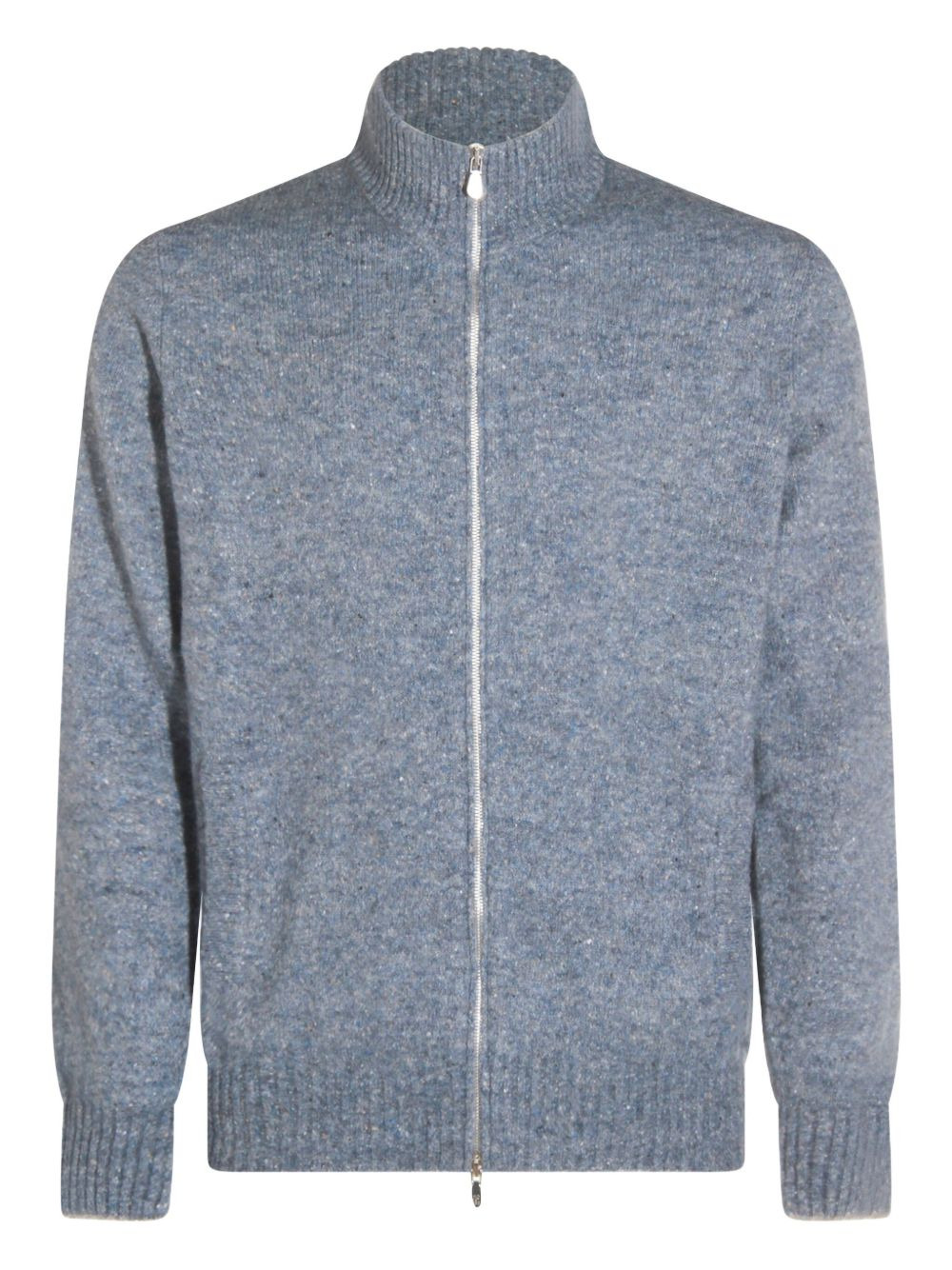 high-neck zip-front cardigan Highlights - Blue - High neck - Zip front - Ribbed cuffs - Long sleeves Made in Italy Composition Cashmere 36%, Polyamide 25%, Wool 13%, Silk 13%, Cotton 10%, Viscose 3% Washing instructions Read Manufacturer Guidelines