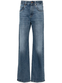 high-rise straight jeans Highlights - Indigo blue - Cotton - Denim - Logo patch to the rear - High-rise - Belt loops - Front button and zip fastening - Straight leg - Classic five pockets - Straight hem Made in Italy Composition Outer: Calf Leather 100%, Elastane 1% Lining: Cotton 100% SIZE & FIT Model measurements Height 5 ft 10 in(1.77 m) Bust/Chest 32.28 in(82 cm) Hips 35.03 in(89 cm) Waist 25.19 in(64 cm) FittingInformation Designed for a straight-leg fit, these jeans allow for a close fit at the waist and an unrestricted and comfortable fit over the leg Constructed from stretch denim, this piece offers a stretch fit with durability This piece fits true to size – take your usual size