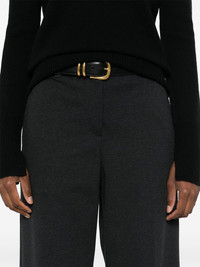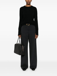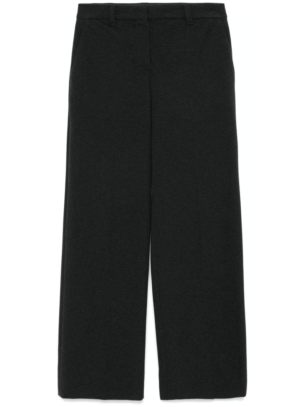 high-waist palazzo pants Highlights - Charcoal grey - Cotton blend - Palazzo design - High-waisted - Concealed front button, hook and zip fastening - Belt loops - Pressed crease - Two side slash pockets - Two rear welt pockets - Wide leg Made in Italy Composition Cotton 78%, Polyamide 16%, Elastane 6% SIZE & FIT Model measurements Height 5 ft 11 in(1.8 m) Bust/Chest 31.49 in(80 cm) Hips 36.61 in(93 cm) Waist 24.4 in(62 cm) FittingInformation Designed with a wide-leg cut, these trousers allow for a close fit at the waist and offer a loose and roomy fit over the leg Made from a midweight stretch fabric, this piece offers elasticity and flexibility when worn