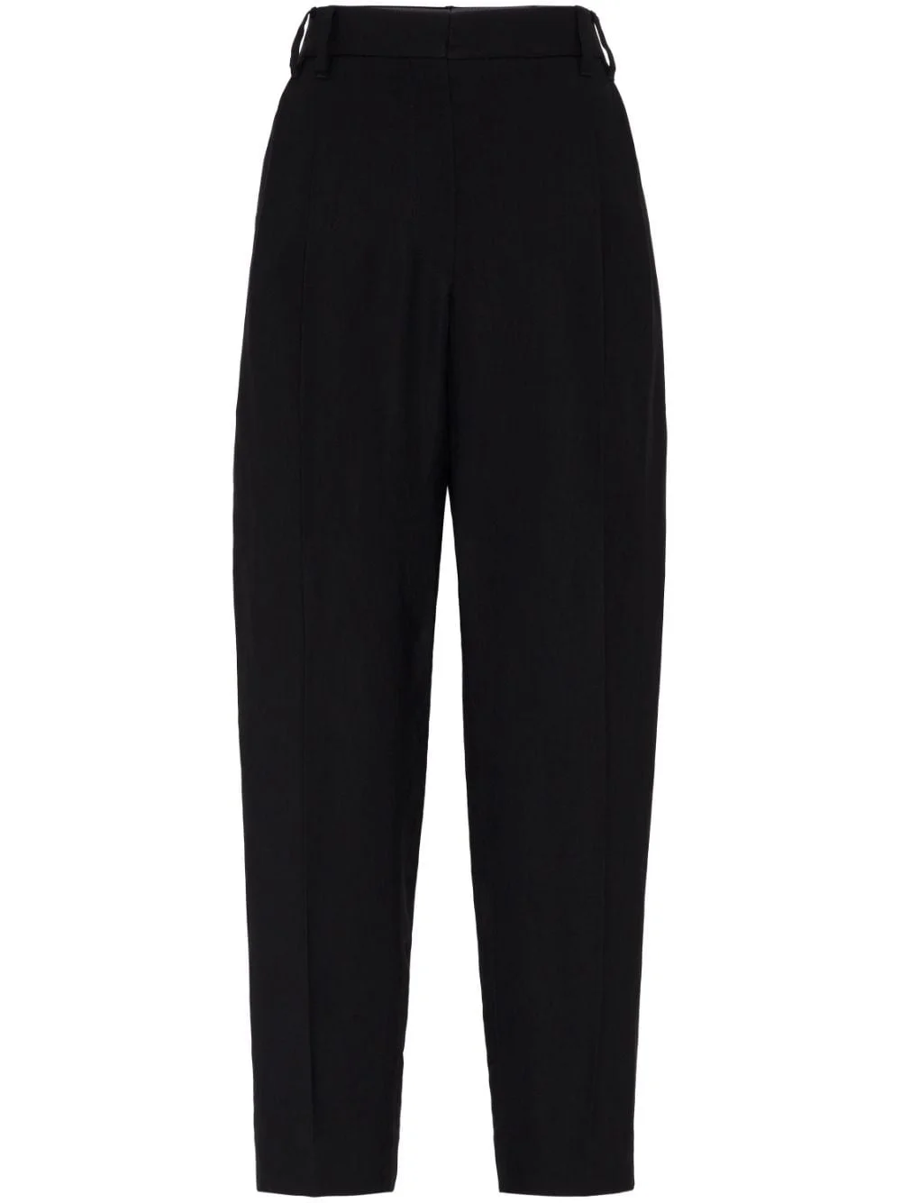 high-waisted pleated cropped trousers Highlights - Black - Pleat detailing - High-waisted - Belt loops - Hook and zip fly fastening - Two side inset pockets - Two rear welt pockets - Tapered leg - Cropped Made in Italy Composition Viscose 73%, Linen/Flax 27% Washing instructions Read Manufacturer Guidelines