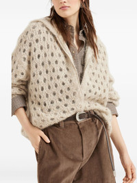 hooded hole-detail cardigan Highlights - Beige - Mohair wool blend - Zip front fastening - Hooded neckline - Hole detail - Speckled effect Made in Italy Composition Mohair 54%, Nylon 26%, Polyester 15%, Wool 5% Washing instructions Hand Wash