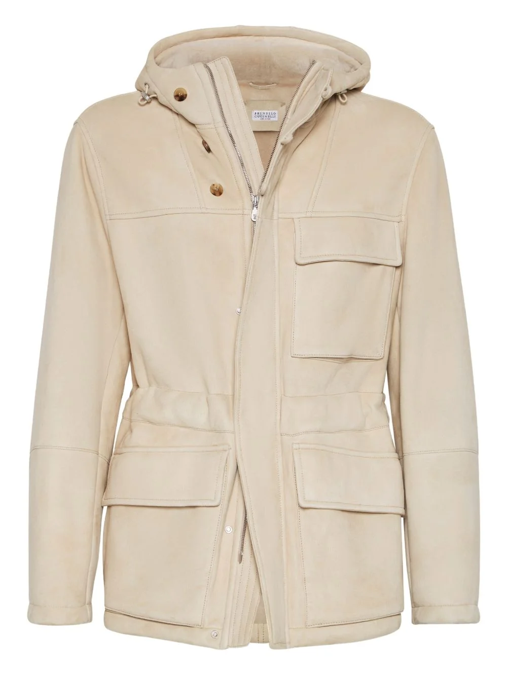 hooded parka Highlights - Light beige - Hooded - Snap-button fastening - Zip fastening - Flap pockets Made in Italy Composition Lamb Shearling 100%, Suede 100% Washing instructions Read Manufacturer Guidelines