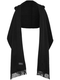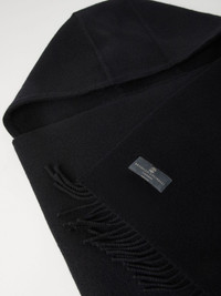 hooded scarf Highlights - Black - Wool-cashmere blend - Knitted construction - Fringe detailing - Logo patch to the front - Slouchy hood - Wraparound style Made in Italy Composition Wool 59%, Cashmere 41% SIZE & FIT Measurement LENGTH 94.48 in(240 cm) WIDTH 19.68 in(50 cm)
