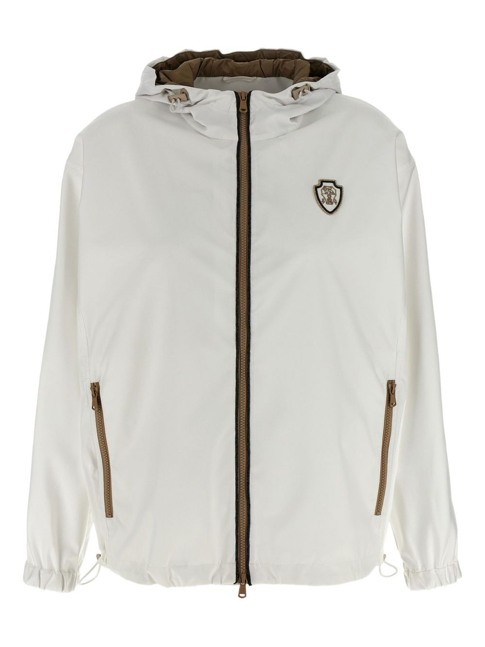 hooded windbreaker Highlights - White - Front zip fastening - Drawstring hood - Two side zip-fastening pockets - Long sleeves Made in Italy Composition Lining: Nylon 100% Outer: Polyester 93%, Polyurethane 7%