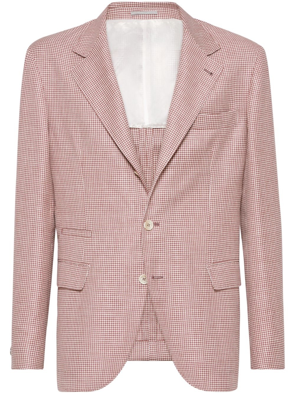 houndstooth-pattern blazer Highlights - White/red - Front button fastening - Two side flap pockets - English rear vents - Houndstooth pattern Made in Italy Composition Outer: Wool 49%, Eco Linen 42%, Fabric 9% Lining: Cupro 100%