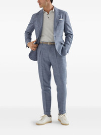 Comfort wool, silk and linen Prince of Wales leisure fit trousers with pleat