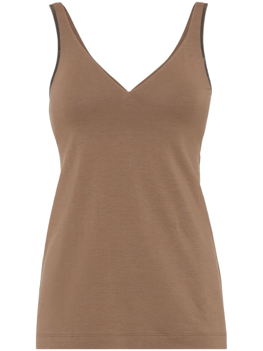 jersey top Highlights - Chocolate brown - Signature monili chain detail - V-neck - Wide shoulder straps Made in Italy Composition Cotton 93%, Elastane 7%