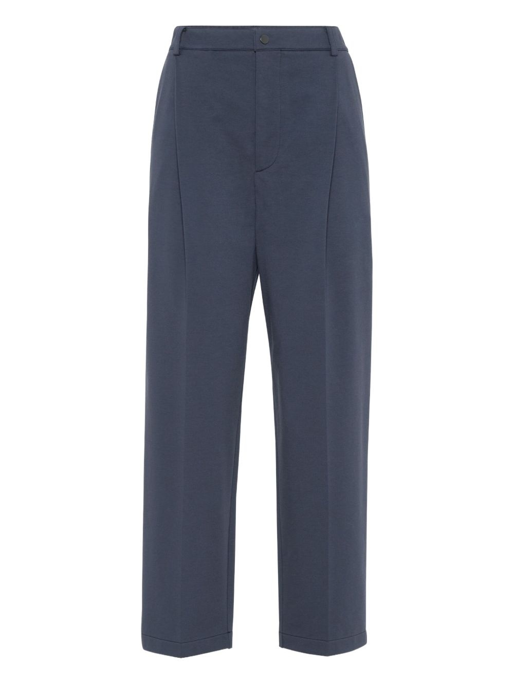 jersey trousers Highlights - Blue - Front button fastening - Rear elasticated waistband - Belt loops - Two rear patch pockets Made in Italy Composition Cotton 98%, Elastane 2%
