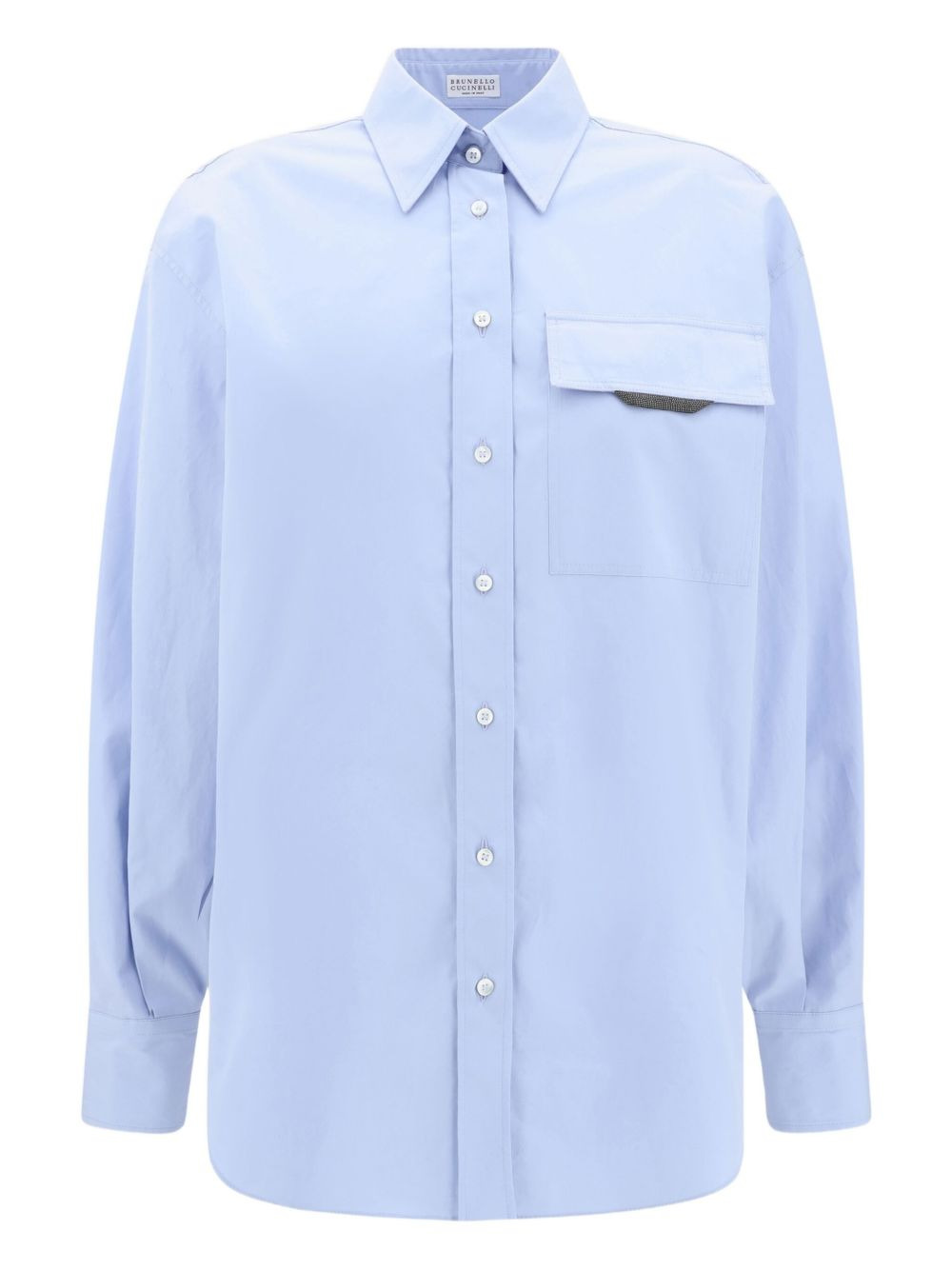 jewel-embellished pocket shirt Highlights - Light blue - Cotton - Classic collar - Button fastening - Flap pocket - Jewel embellishment Made in Italy Composition Cotton 100% Washing instructions Read Manufacturer Guidelines