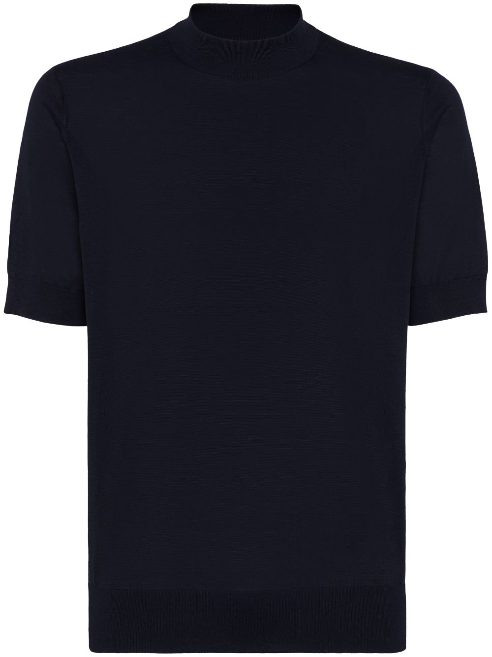 knitted T-shirt Highlights - Midnight blue - Mock neck - Short sleeves - Ribbed cuffs and hem Made in Italy Composition Silk 62%, Cotton 38%