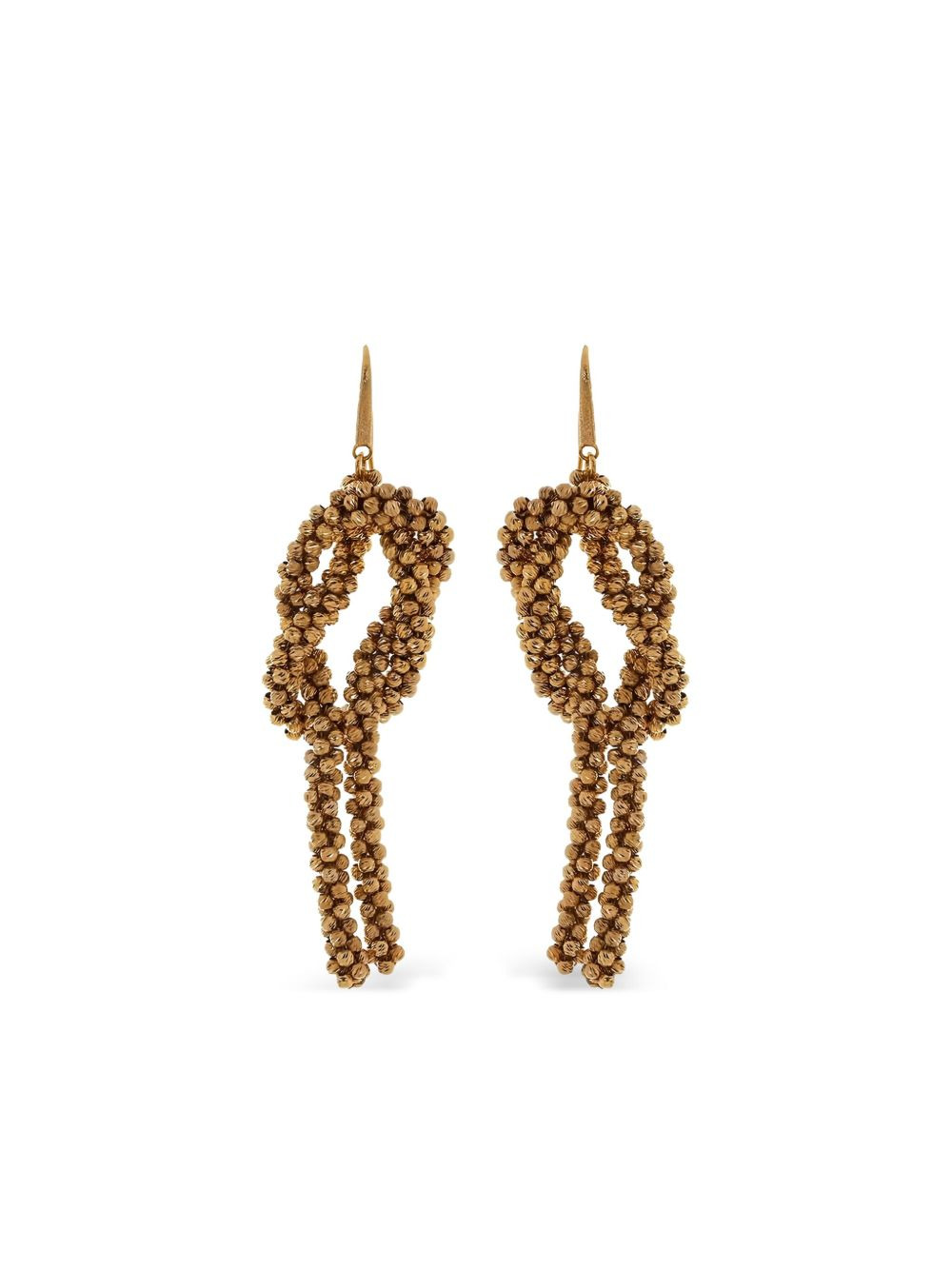 knot-detail drop earrings Highlights - Gold-tone - Pyrite gemstone embellishment - Knot detail - Beaded detailing - Drop design - Hook fastening - These earrings come as a pair. - Normal everyday use and external agents may reduce the lustre of gemstones and gold surfaces. to maintain, use specific, non-abrasive products specially meant for cleaning jewellery. Imported