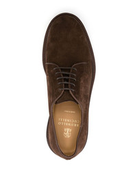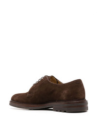 lace-up suede derby shoes Highlights - Coffee brown - Calf leather - Suede - Branded insole - Almond toe - Front lace-up fastening - Flat rubber sole Made in Italy Composition Outer: Calf Leather 100% Sole: Rubber 100% Lining: Calf Leather 100% SIZE & FIT Measurement HEEL 1.18 in(3 cm)