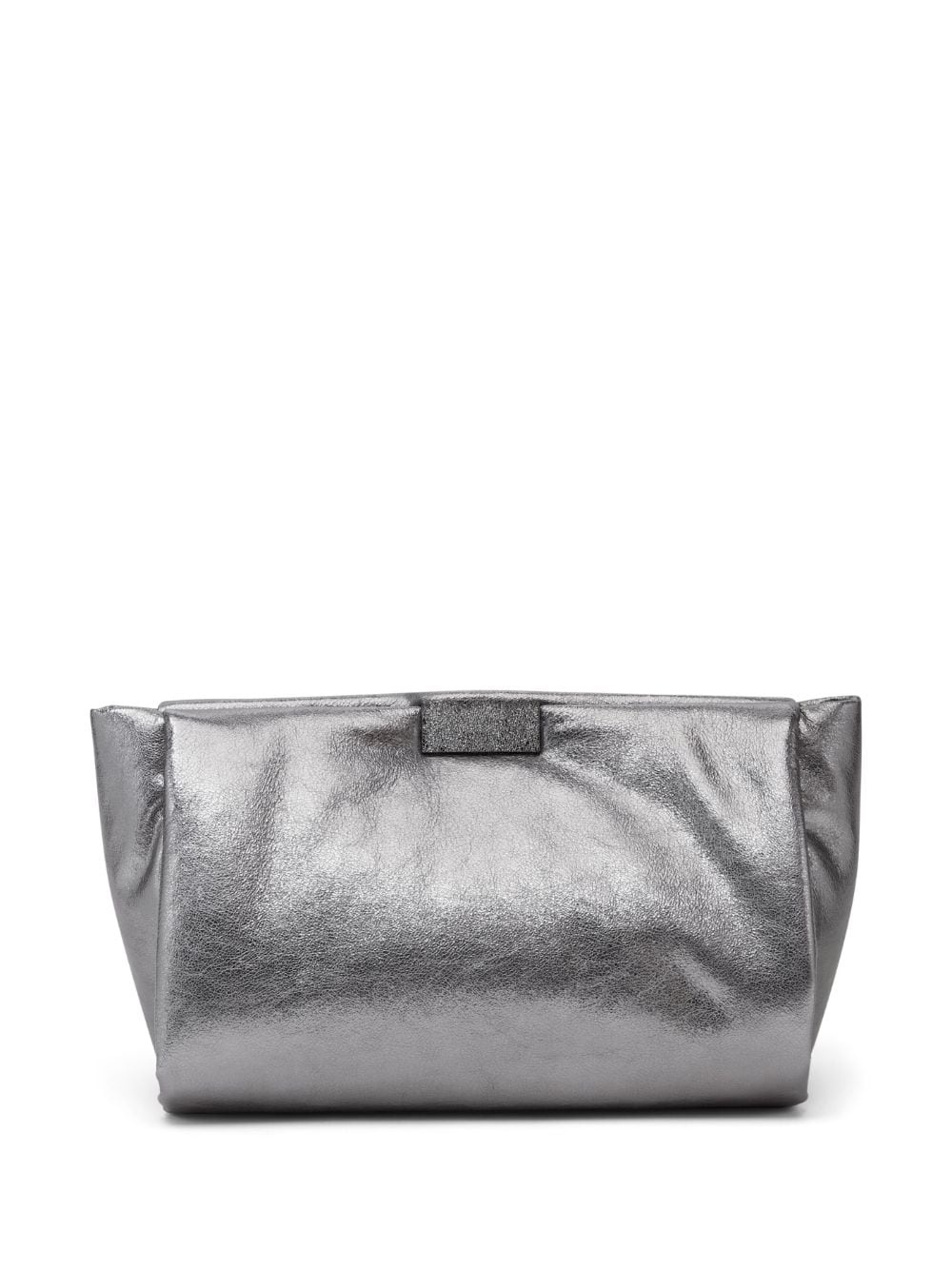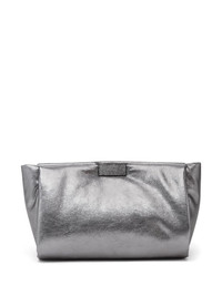Lame calfskin clutch bag Highlights - Silver - Leather - Metallic effect - Internal logo patch - Magnetic fastening - Internal zip-fastening pocket - Main compartment Made in Italy Composition Outer: Leather 100% SIZE & FIT Measurement DEPTH 4.92 in(12.5 cm) HEIGHT 6.29 in(16 cm) WIDTH 12.2 in(31 cm)