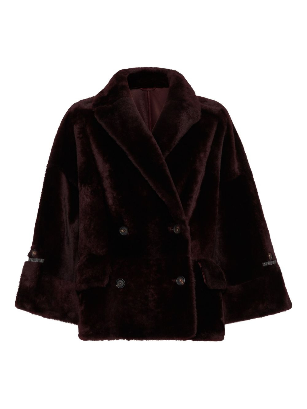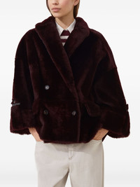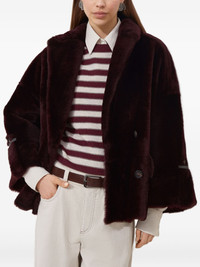 lamb-fur double-breasted jacket Highlights - Burgundy - Lamb fur - Double-breasted fastening - Wide sleeves - Leather-trimmed cuffs - Patch pockets Made in Italy Composition Lamb Fur 100%