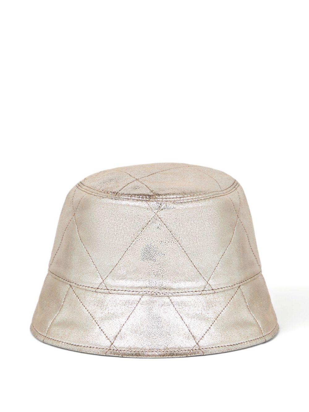 lame bucket hat Highlights - Gold-tone - Diamond quilting - Flat crown - Dropped wide brim Made in Italy Composition Leather 25%, Acetate 25%, Silk 25%, Metallic Fibre 25%