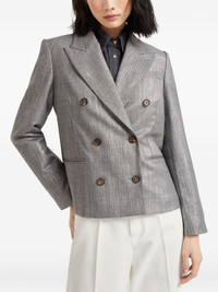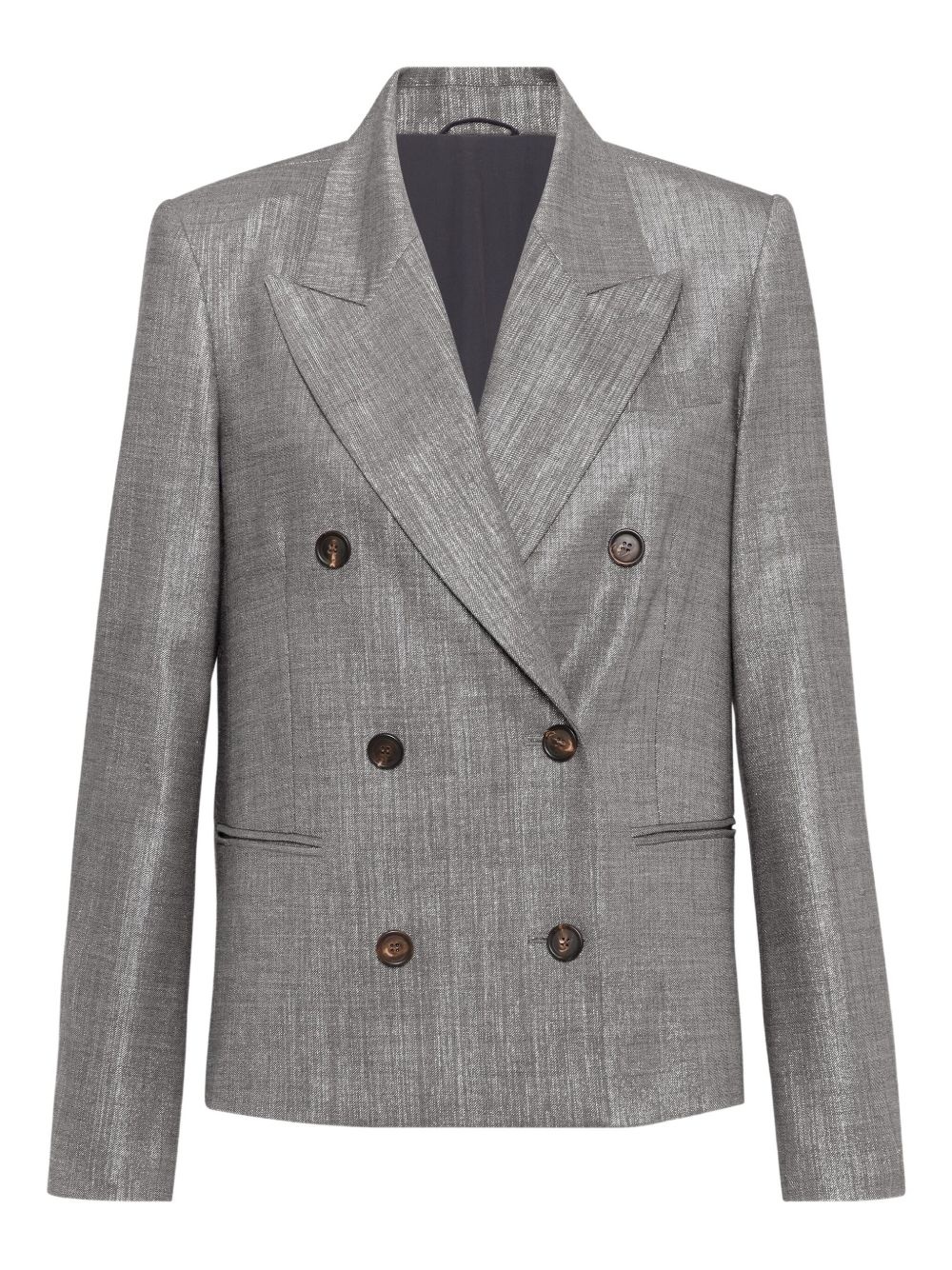 lame-effect blazer Highlights - Medium grey - Double-breasted button fastening - Chest welt pocket - Two front jetted pockets - Buttoned cuffs Made in Italy Composition Fabric 41%, Polyester 32%, Viscose 27%