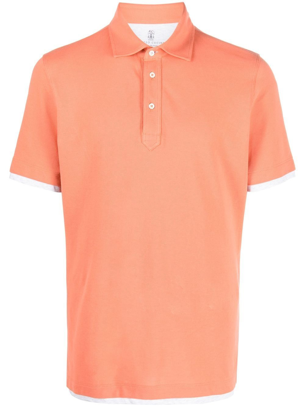layered cotton polo shirt Brunello Cucinelli updates a classic here. This orange polo shirt features a classic collar atop an additional pale grey layer for added detail. Made in Italy Composition Cotton 100% SIZE & FIT Model measurements Height 6 ft 2 in(1.87 m) Bust/Chest 35.82 in(91 cm) Hips 35.43 in(90 cm) Waist 27.95 in(71 cm) FittingInformation This piece fits true to size. We recommend you get your regular size Cut for a relaxed fit Made with a mid-weight fabric Washing instructions Machine Wash