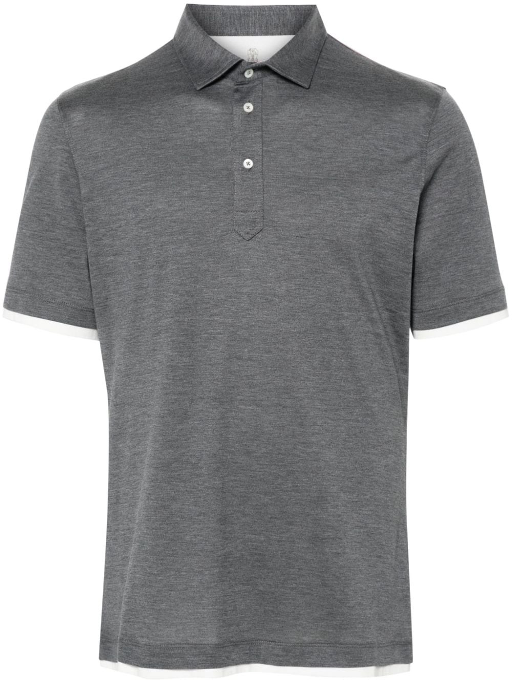 layered-effect polo shirt Highlights - Medium grey - Silk-cotton blend - Jersey texture - Layered effect - Short front button fastening - Melange effect - Polo collar - Short sleeves - Straight hem Made in Italy Composition Silk 62%, Cotton 38% SIZE & FIT Model measurements Height 6 ft 0 in(1.84 m) Bust/Chest 35.82 in(91 cm) Hips 37 in(94 cm) Waist 28.34 in(72 cm) FittingInformation Designed for a relaxed fit, this polo shirt offers comfort and movement Made from a midweight non-stretch fabric, this piece offers minimal elasticity when worn