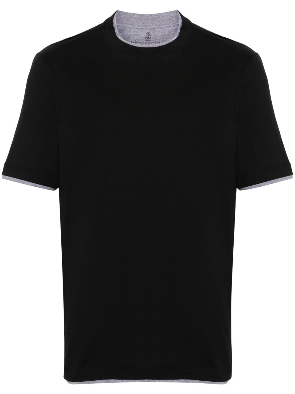layered-effect T-shirt Highlights - Black - Cotton - Jersey texture - Layered effect - Crew neck - Short sleeves - Straight hem Made in Italy Composition Cotton 100% SIZE & FIT Model measurements Height 6 ft 2 in(1.88 m) Bust/Chest 36.61 in(93 cm) Hips 35.82 in(91 cm) Waist 27.95 in(71 cm) FittingInformation Designed for a relaxed fit, this piece allows for comfort and movement when worn Made from a midweight non-stretch fabric, this piece offers minimal elasticity when worn This piece fits true to size – take your usual size Washing instructions Machine Wash