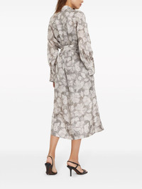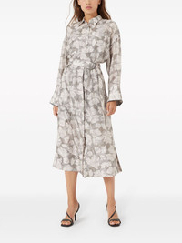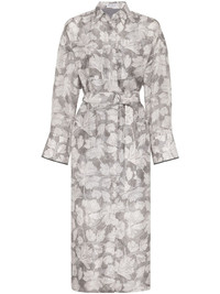 leaf-print belted midi dress Highlights - Grey/white - Silk - Leaf print - Spread collar - Concealed front button fastening - Belted waist - Long sleeves - Two side inset pockets - Straight hem Made in Italy Composition Silk 100%