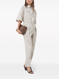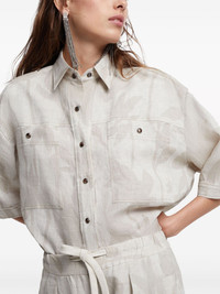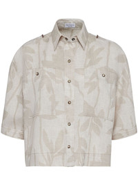 leaf-print linen shirt Highlights - Beige - Linen - Leaf print - Signature monili chain detail - Classic collar - Front button fastening - Two chest patch pockets - Short sleeves - Straight hem Made in Italy Composition Linen/Flax 100% Washing instructions Read Manufacturer Guidelines