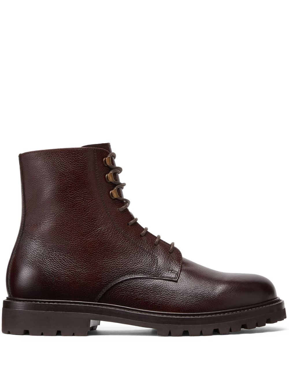 leather ankle boots Highlights - Brown - Leather - Round toe - Front lace-up fastening - Ankle-length - Branded leather insole - Flat sole Made in Italy Composition Lining: Fabric 100% Outer: Leather 100% Sole: Rubber 100%