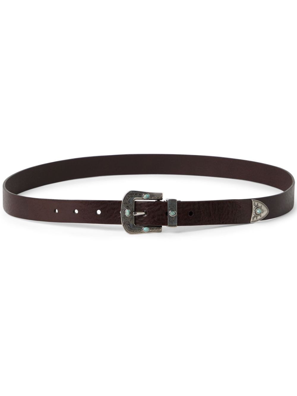 leather belt Highlights - Cedar brown - Buckle fastening - Single loop - Turquoise stone Made in Italy Composition Calf Leather 100% SIZE & FIT Measurement WIDTH 0.98 in(2.5 cm)