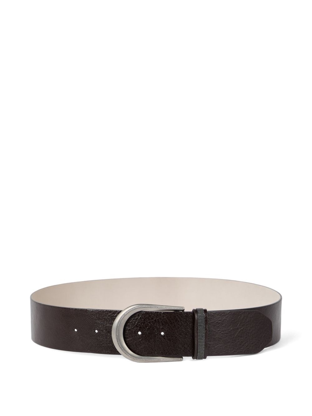 leather belt Highlights - Dark brown - Silver-tone buckle - Multiple hole adjustments - Wide strap Made in Italy Composition Leather 100%