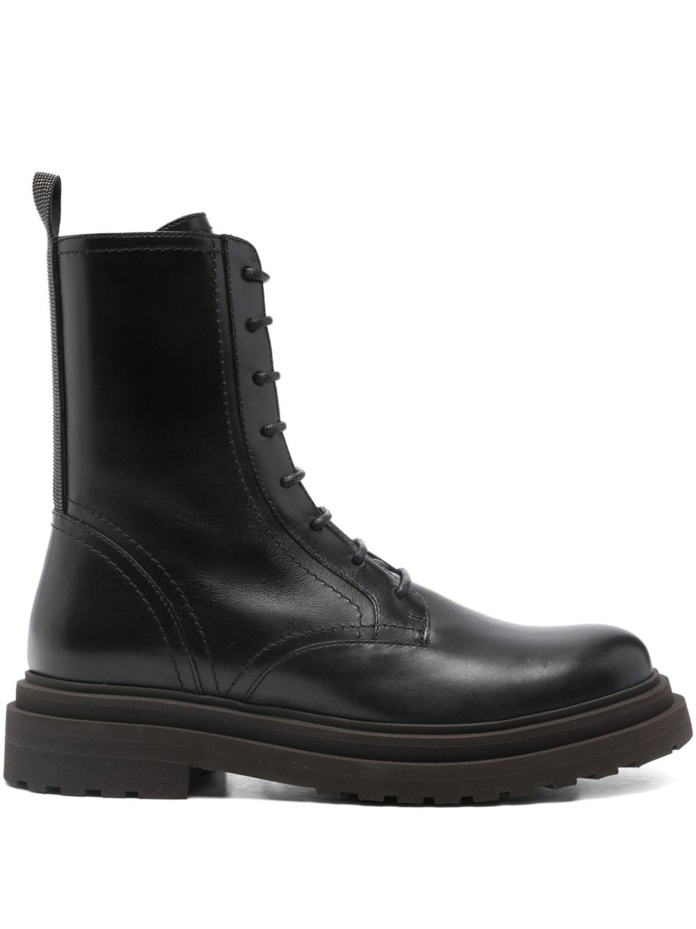 leather biker boots Highlights - Black - Front lace-up fastening - Side zip fastening Made in Italy Composition Outer: Calf Leather 100% Sole: Rubber 100% Lining: Calf Leather 100%