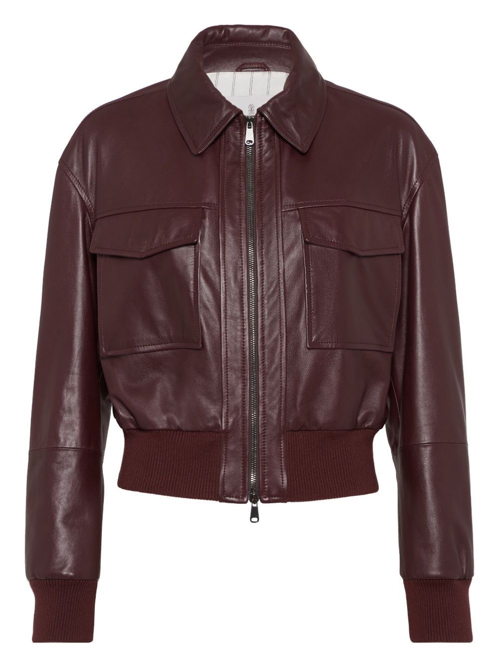 leather flap-pocket jacket Highlights - Dark red - Nappa leather - Zip fastening - Ribbed hem - Ribbed cuffs - Flap pockets Made in Italy Composition Leather 100% Washing instructions Specialist Cleaning