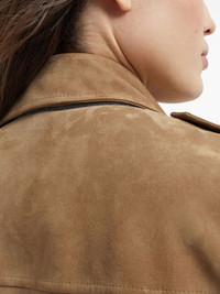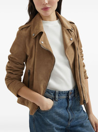leather jacket Highlights - Sand beige - Front zip fastening - Two side zip-fastening pockets - Notched lapels - Long sleeves Made in Italy Composition Leather 100% Washing instructions Specialist Cleaning