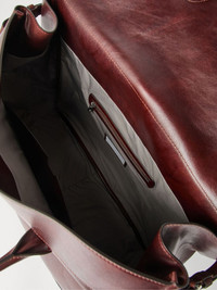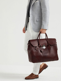 leather luggage bag Highlights - Burgundy - Calf leather - Lock and key fastening - Two top handles - Foldover top - Logo tag - Main compartment - Internal zip-fastening pocket Made in Italy Composition Outer: Calf Leather 100%