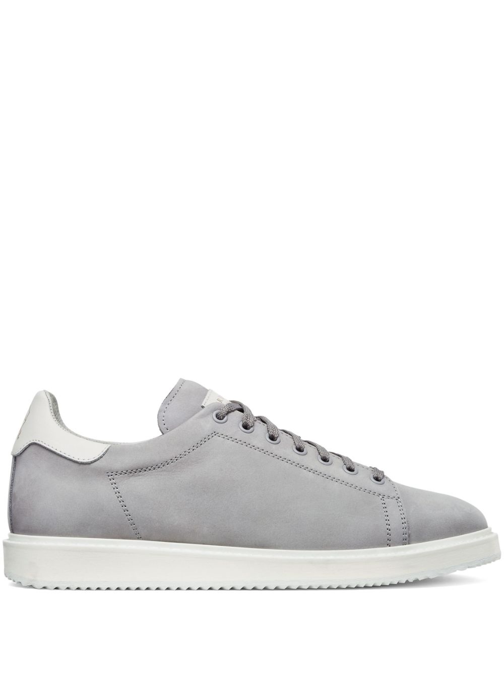 leather sneakers Highlights - Light grey - Nubuck leather - Panelled design - Logo patch at the tongue - Decorative stitching - Contrasting branded heel counter - Round toe - Front lace-up fastening - Branded leather insole - Flat rubber sole Made in Italy Composition Outer: Thermoplastic Polyurethane (TPU) 100%, Nubuck Leather 100% Sole: Rubber 100% Lining: Calf Leather 100%
